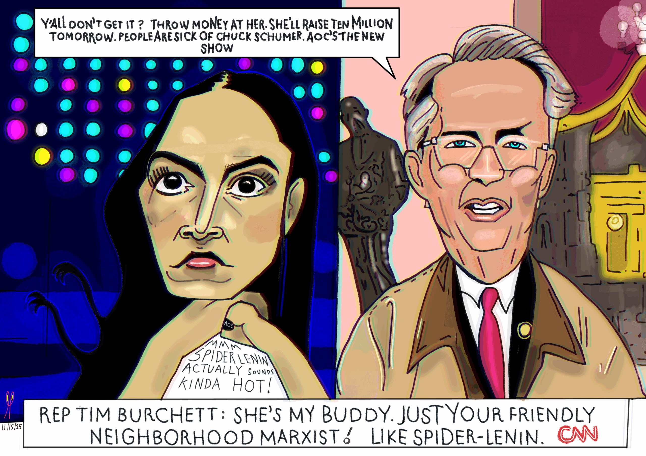 I loved drawing this one! I lthink his idea is great. AOC is the new face of the Democrats! I love that jacket too.