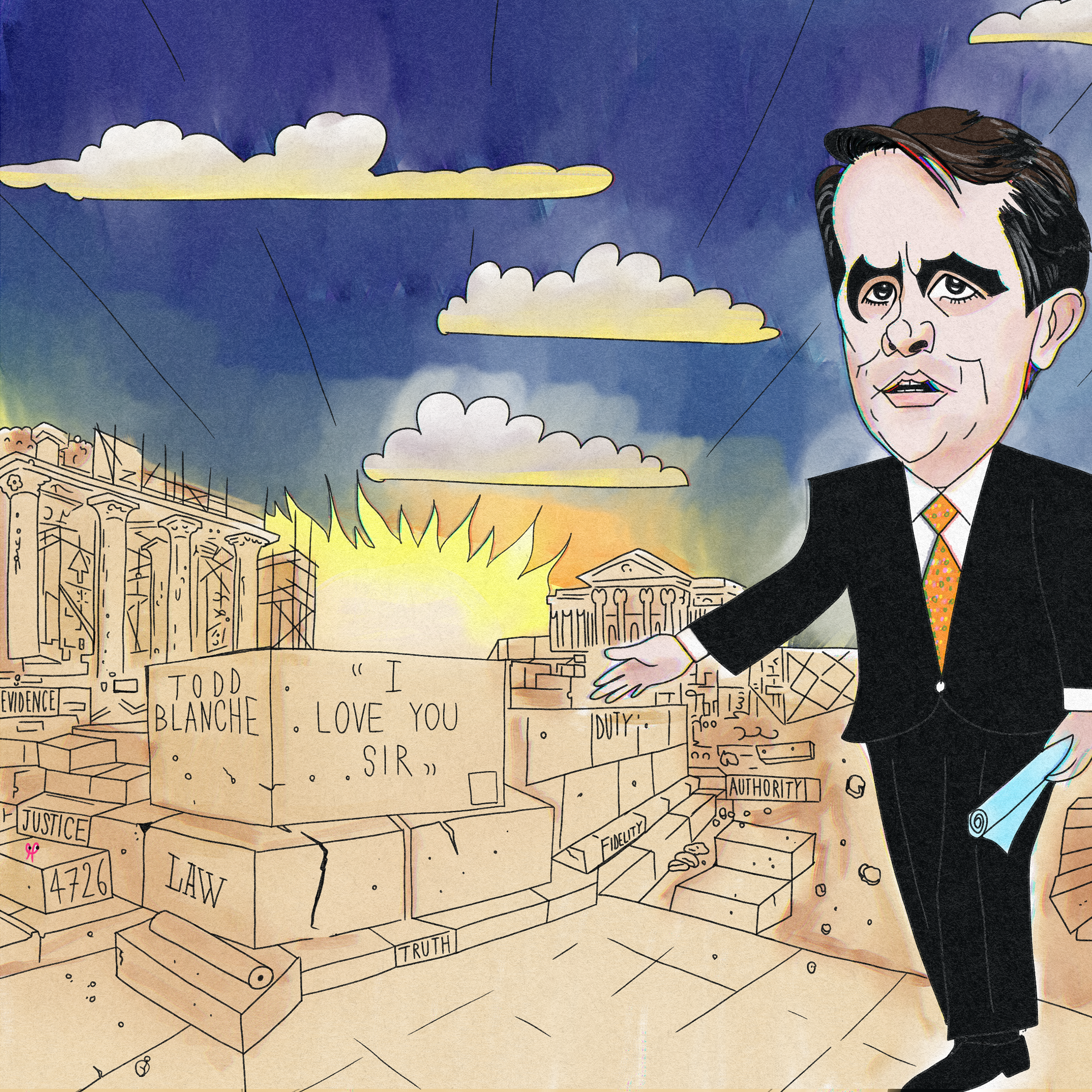 Todd Blanche’s words — “I love you, sir” — became one of the most human moments in today’s political landscape. I chose to memorialize it in this political cartoon because behind law, justice, and structure, there is always loyalty, conviction, and belief. As someone who supports President Donald Trump, I saw that moment as deeply human and worth capturing. This piece is my artistic tribute to that expression of loyalty and the symbolism behind it.